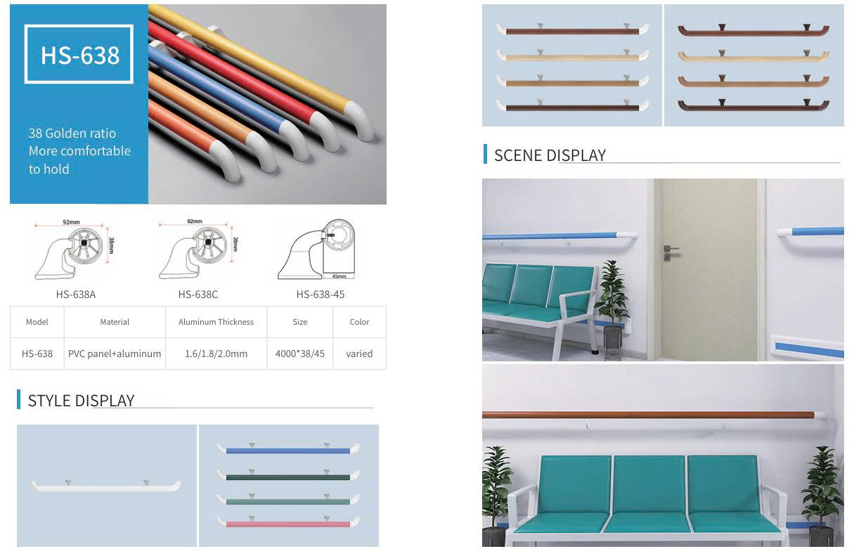 Nâng cấp hệ thống an toàn hành lang với tay vịn HS-638 – được thiết kế theo tỷ lệ công thái học giúp cầm nắm thoải mái và bảo vệ tường hiệu quả.